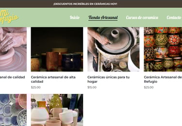 Mi refugio ceramicas es una tienda online de Productos de ceramcias en donde se promocionan articulos de ceramicas, materiales para crear artesanias y por supuesto cursos especializado en este rubro. Gracias a la creacion del sitio / tienda online, Mi refugio podra vender y posicionar sus cursos y productos en internet!!