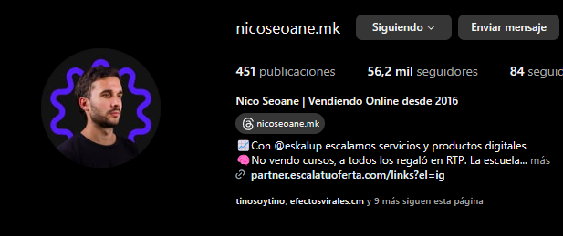 "Ejemplos de cómo se posicionan los perfiles en Instagram junto con los servicios que ofrecen. El perfil de Nico Seoane destaca su experiencia en la venta online, mientras que el del Globo Infernal muestra su faceta como músico y cantante. Cada uno utiliza su plataforma para conectarse con su audiencia y promover sus servicios de manera efectiva."